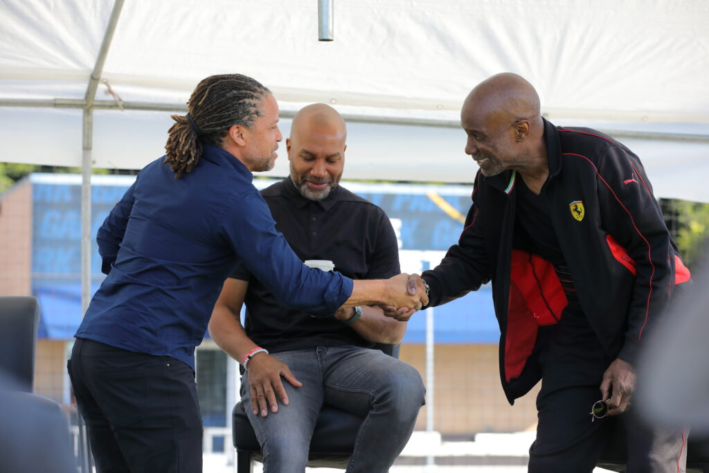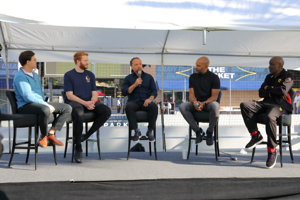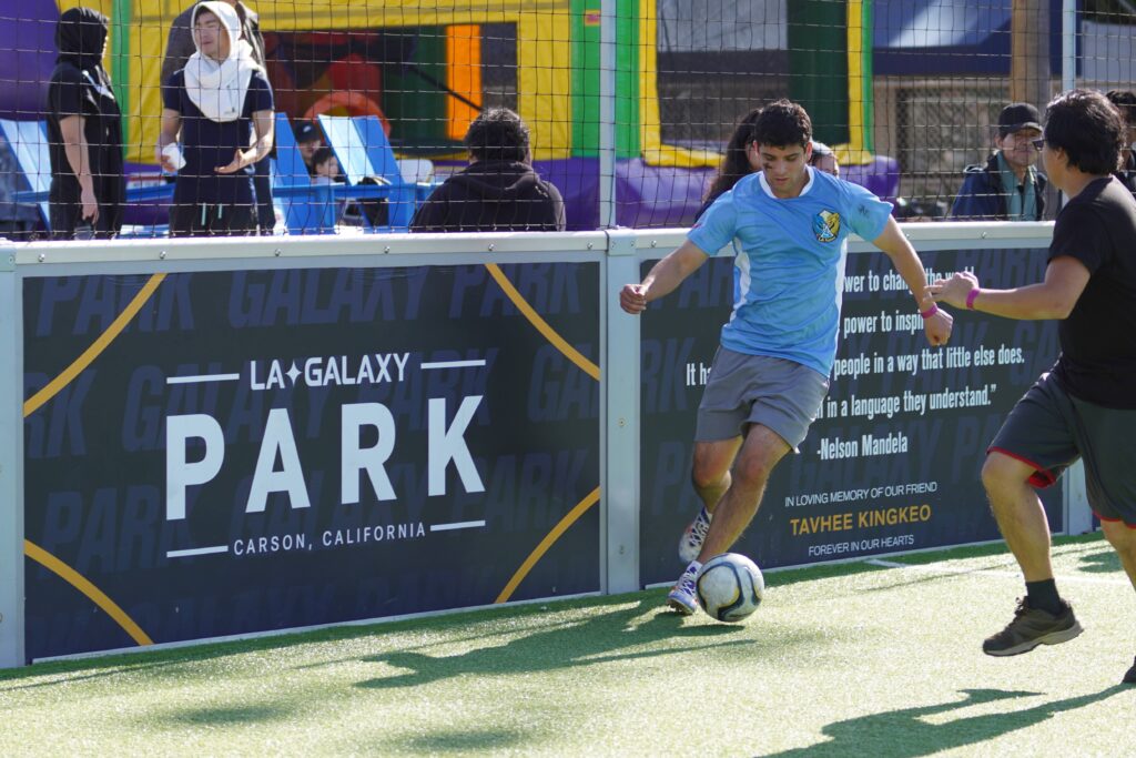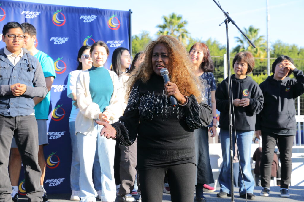 The highlight of Peace Cup 2025 was the “Light the Way” cutural festival that featured an opening message delivered by Denthew Learey, president of Youth & Students for Peace, a panel discussion between Bishop Noel Jones, Senior Pastor of the City of Refuge LA, Derek Fisher, former NBA basketball player, and Cobi Jones, former MLS player, and a 100 Voice Choir led by Blinky Williams, Motown and Gospel singer.